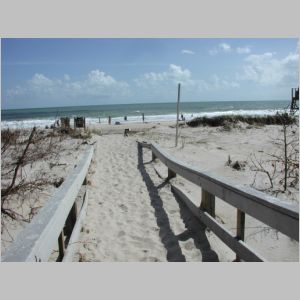 The beach access if filled with a few feet of sand. |
